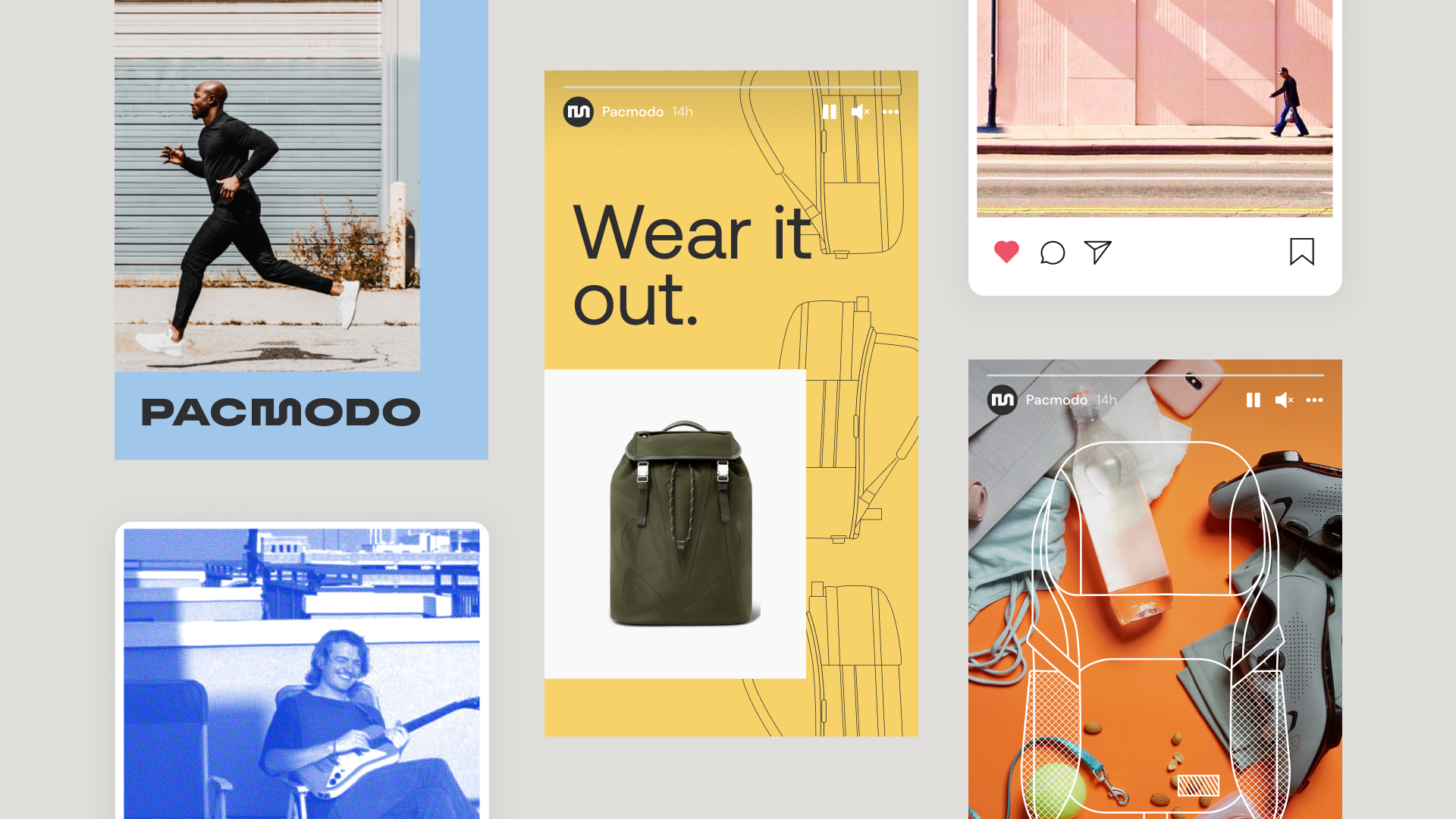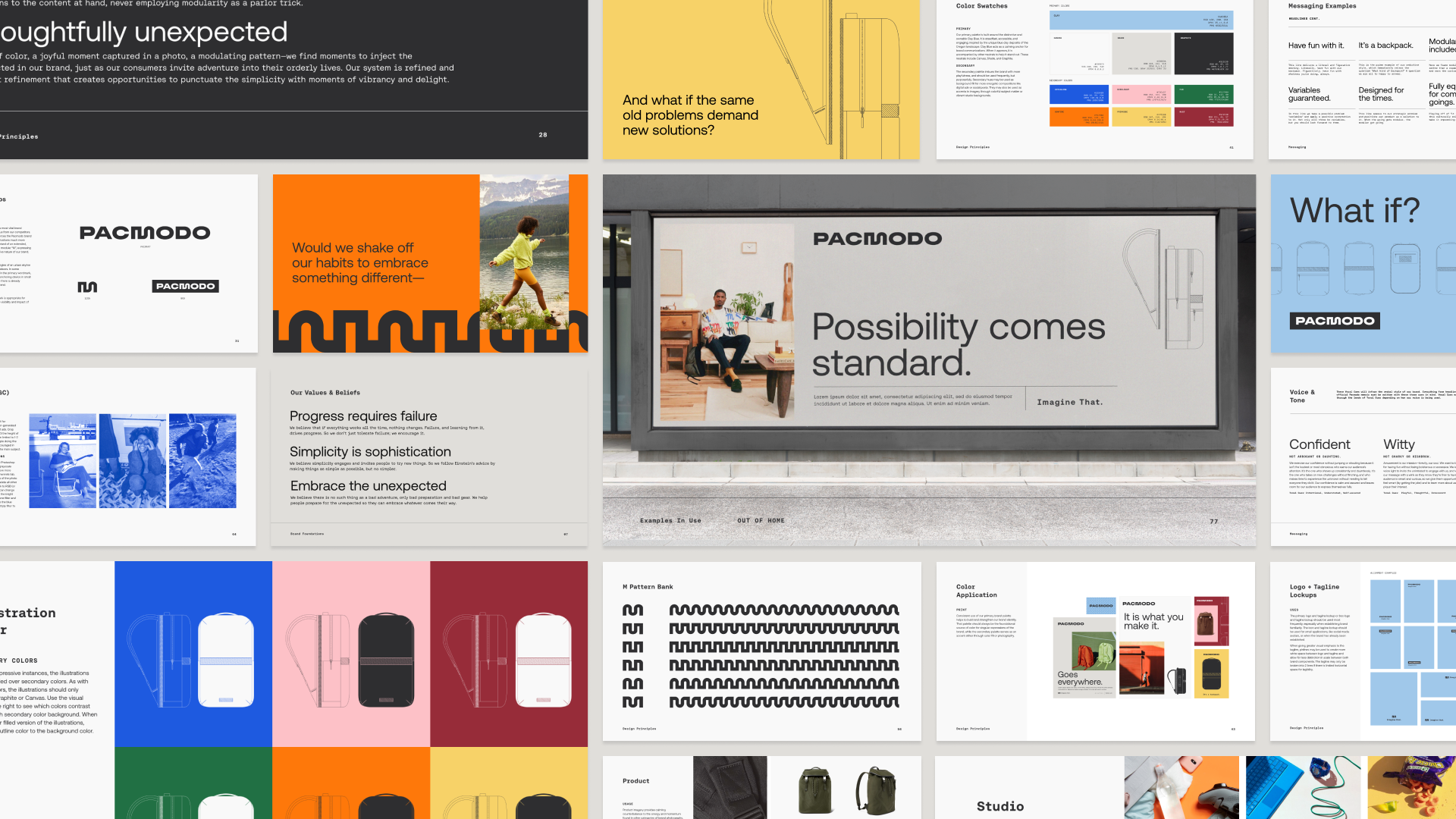 When former designers from Nike approached Owen Jones to assist with the launch of a unique brand in a crowded category, we crafted an identity that captured the potential of Pacmodo with visuals and messaging centered around possibility. Pacmodo now identifies as a reinvention company, with a novel voice founded on comic simplicity, and compelling, modular visuals.