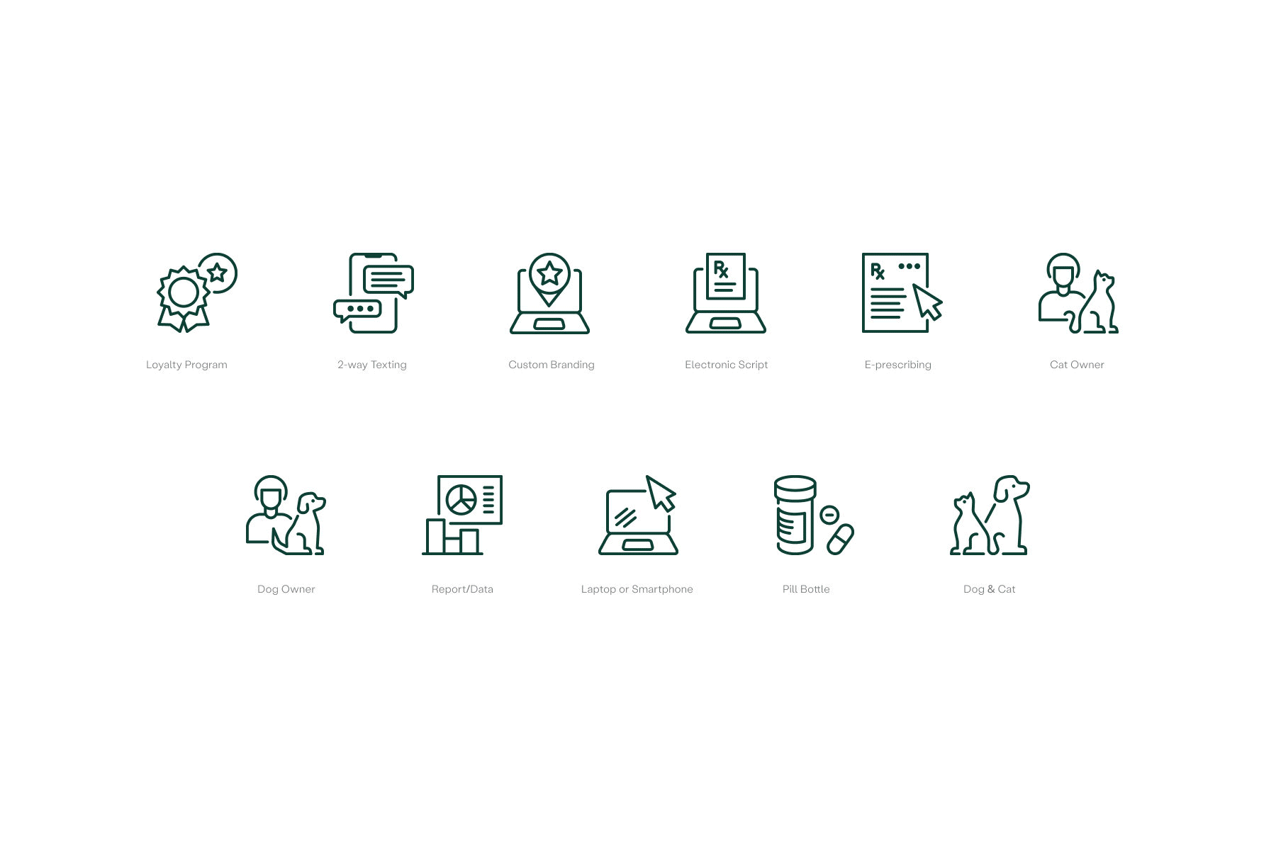 In addition to the traditional suite of identity deliverables, the final brand system included a three-tiered icon set, large-scale supergraphics, and hand-drawn graphic elements that mimic the urgency and personal nature of the veterinary practice environment.