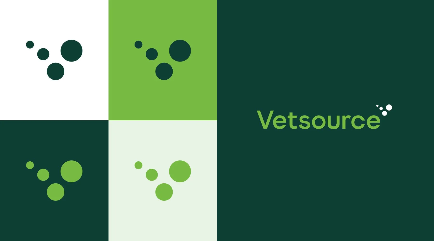 Referencing each pre-merger brand’s mark, the updated Vetsource logo leverages the combined strengths of each organization under one unified brand, presenting an engaging and vibrant identity and communicating the expanded technological and care-centered capabilities of the new Vetsource.
